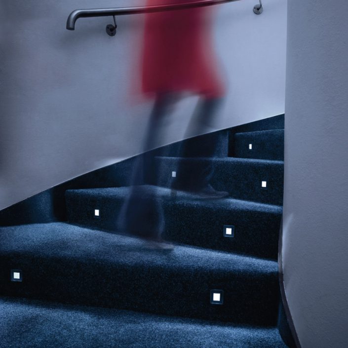 Eyeleds® Multi Square can be used as interior design accents, guide or night-lights. Additionally, this system can be installed into existing flooring by accessing the floor below to link the connectors together through a basement or crawl space.
